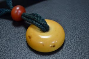 饅頭形人物紋牙彫根付《松下唐王人物故事図》です。