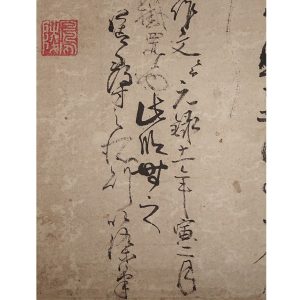 作品の状態としては、古くからの書であります為、多少の皺がございます。その他には、本紙の古い補修痕等も見受けられますが、これと言って大きく目立った傷などはなく、極めて良好だと言えます。